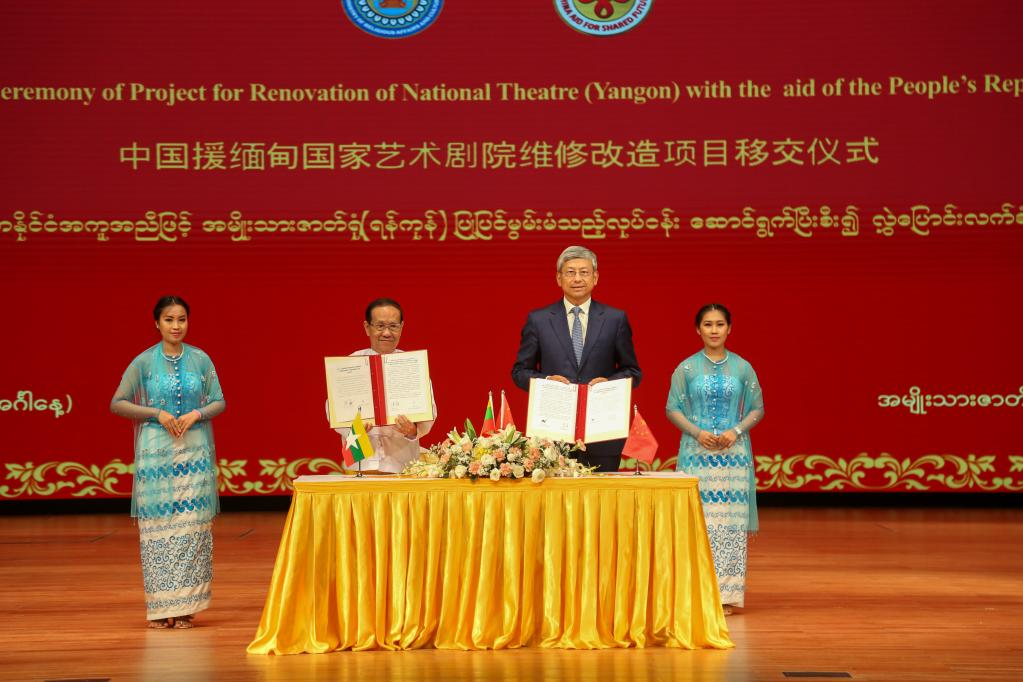 The China-aided renovation project of the National Theatre of Yangon was officially handed over to the Myanmar government here on Tuesday.