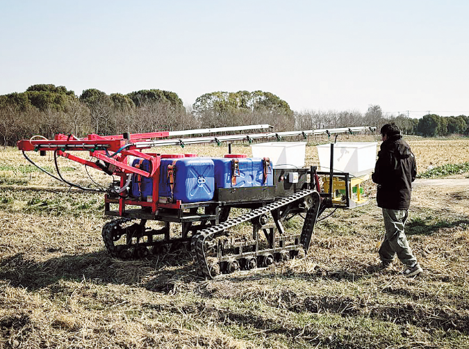 The weeding robots can not only accurately distinguish between grass and crops, but also guide the specialized blades to remove weeds precisely, he said, adding that each weeding robot can operate for eight hours on a one-hour charge.
