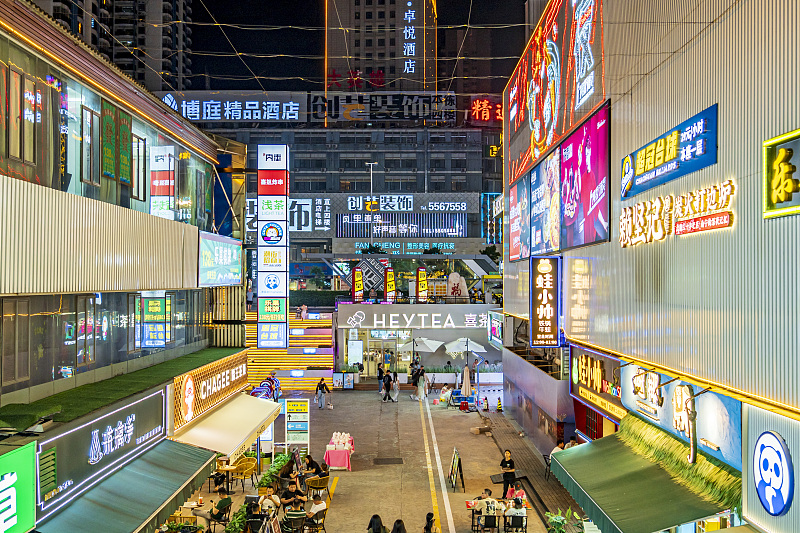 The Inner Street Culture Creative Park is bustling with activity during the night market in Qingxiu district, Nanning city, on April 16, 2024. [Photo/VCG]