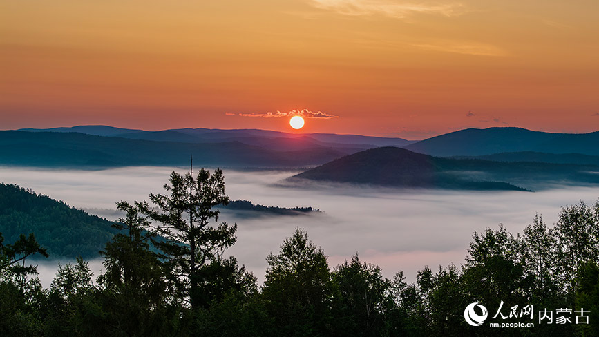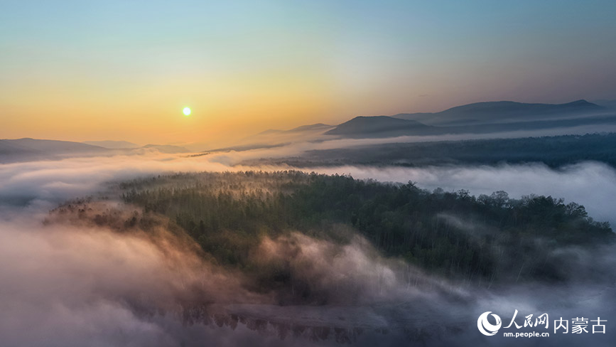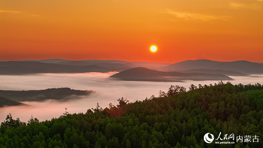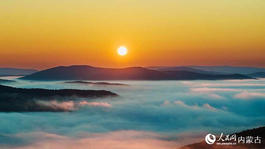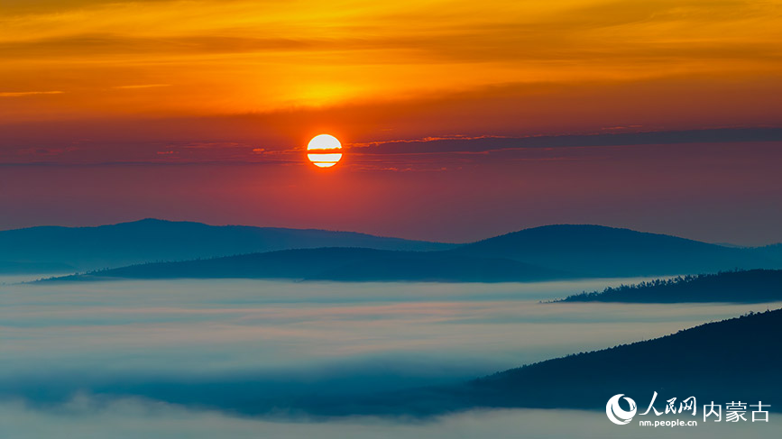 At the Greater Khingan Mountains, northeast China's Inner Mongolia Autonomous Region, the magnificent sunrise breaking out over a sea of clouds attracts plenty of photography enthusiasts and tourists. Following the start of autumn, abundant rainfall in forested areas of the region forms variable clouds and mists. The early morning sunlight refracts through the mists and creates extraordinarily vivid colors that are both mesmerizing and captivating to behold.