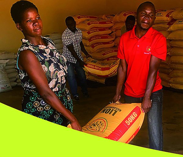 Farmers in Malawi transport chemical fertilizers. [Photo provided to China Daily]