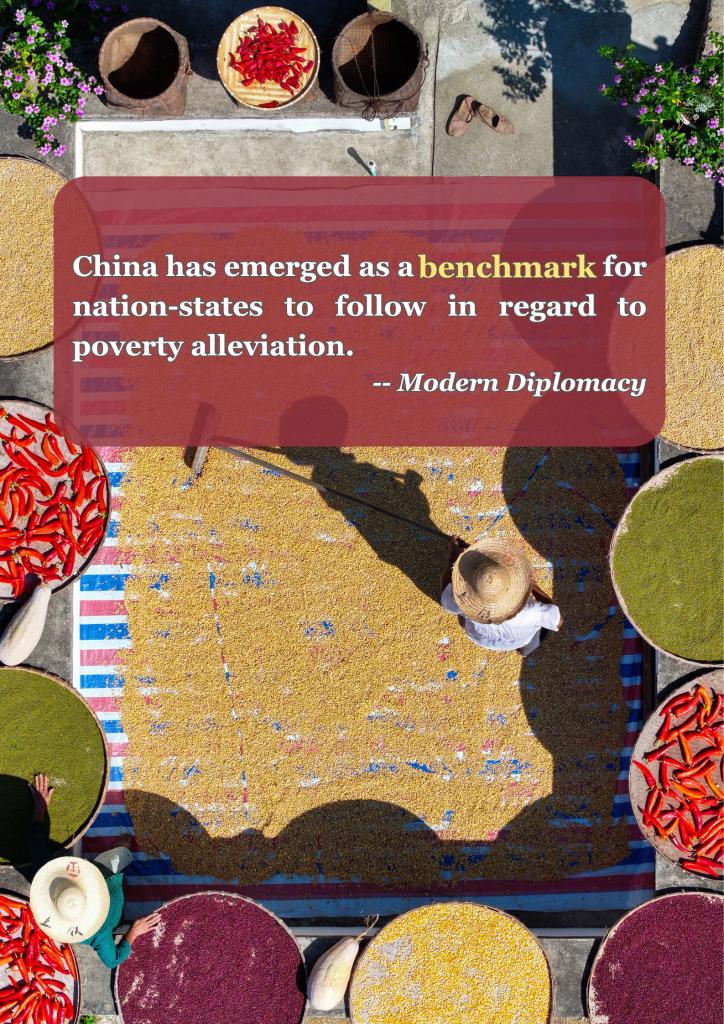 China has emerged as a benchmark for nation-states to follow in regard to poverty alleviation, effectively adapting targeted strategies and creating a strategic mechanism of sustainability, accountability, and transparency, said an article by Modern Diplomacy.