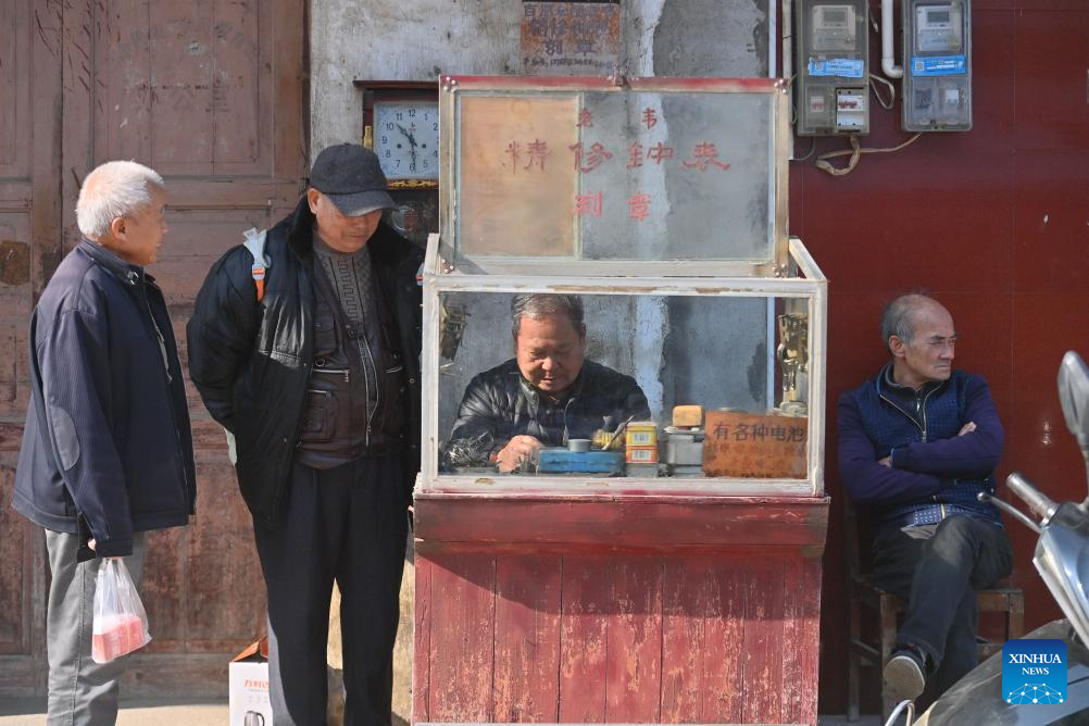 People stand near a watch-fixing stall at a street market at Baipeng Town of Liujiang District in Liuzhou City, south China's Guangxi Zhuang Autonomous Region, Jan. 13, 2026. In recent years, Liujiang District has relied on its thriving rural industries, vibrant agricultural economy and convenient urban transportation network to upgrade and transform local rural markets in a bid to stimulate their vitality.