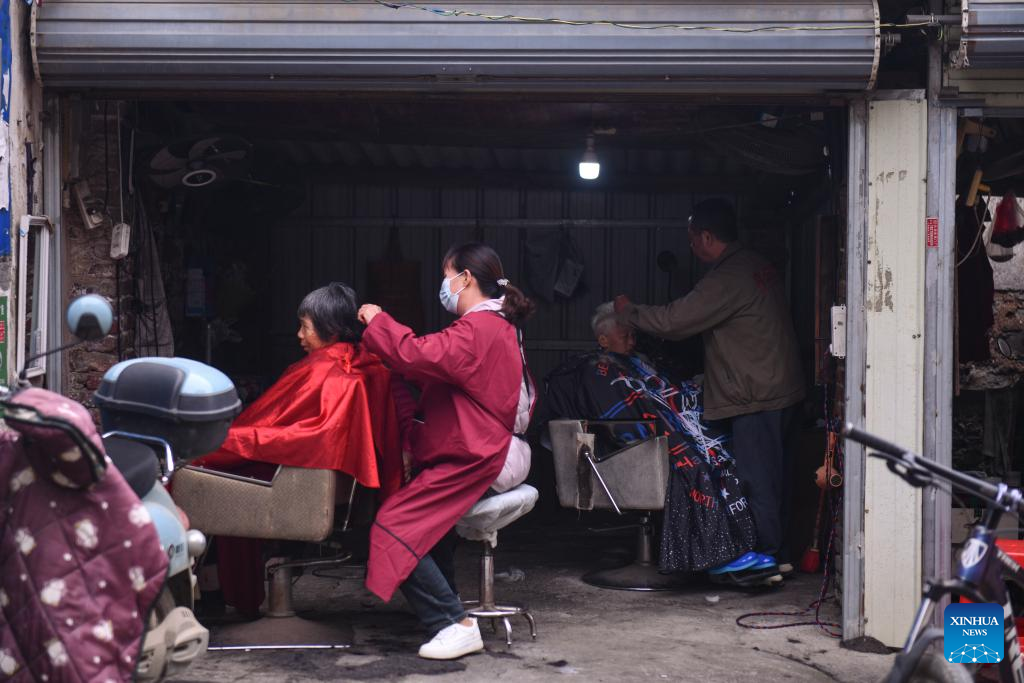 People have hair cut at a barber shop at Jinde Town of Liujiang District in Liuzhou City, south China's Guangxi Zhuang Autonomous Region, Jan. 29, 2026. In recent years, Liujiang District has relied on its thriving rural industries, vibrant agricultural economy and convenient urban transportation network to upgrade and transform local rural markets in a bid to stimulate their vitality.